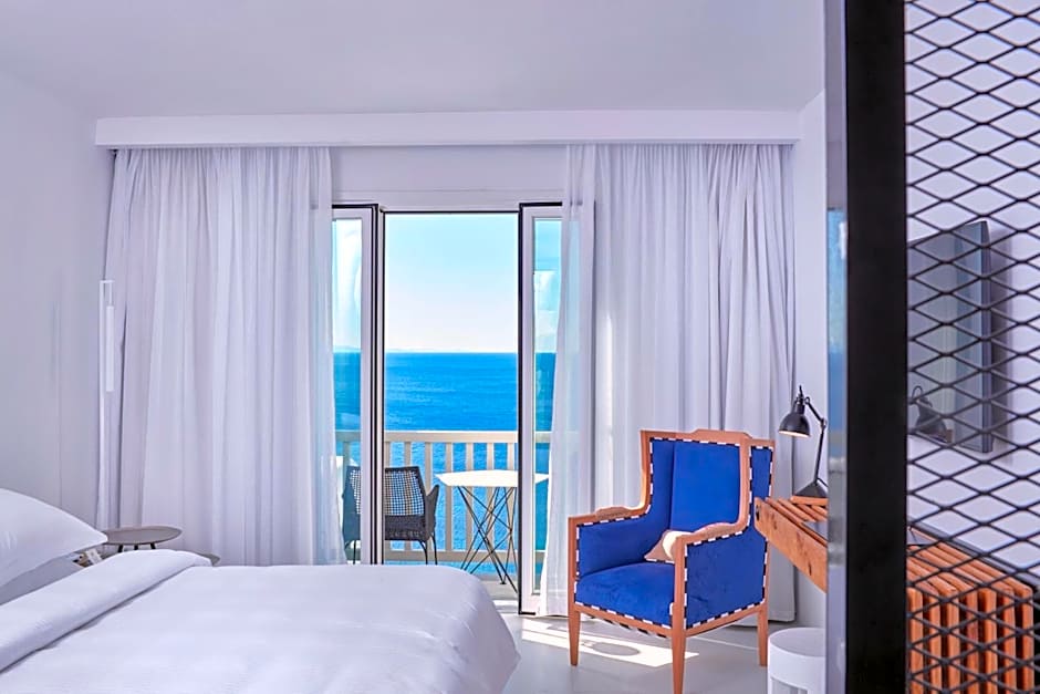 PREMIUM Double Room Sea View with outdoor Jacuzzi is 301 square feet and includes a king-size bed 150-183 width plus balcony, extra beds on demand, satellite tv , hairdryer, and bathrobes.